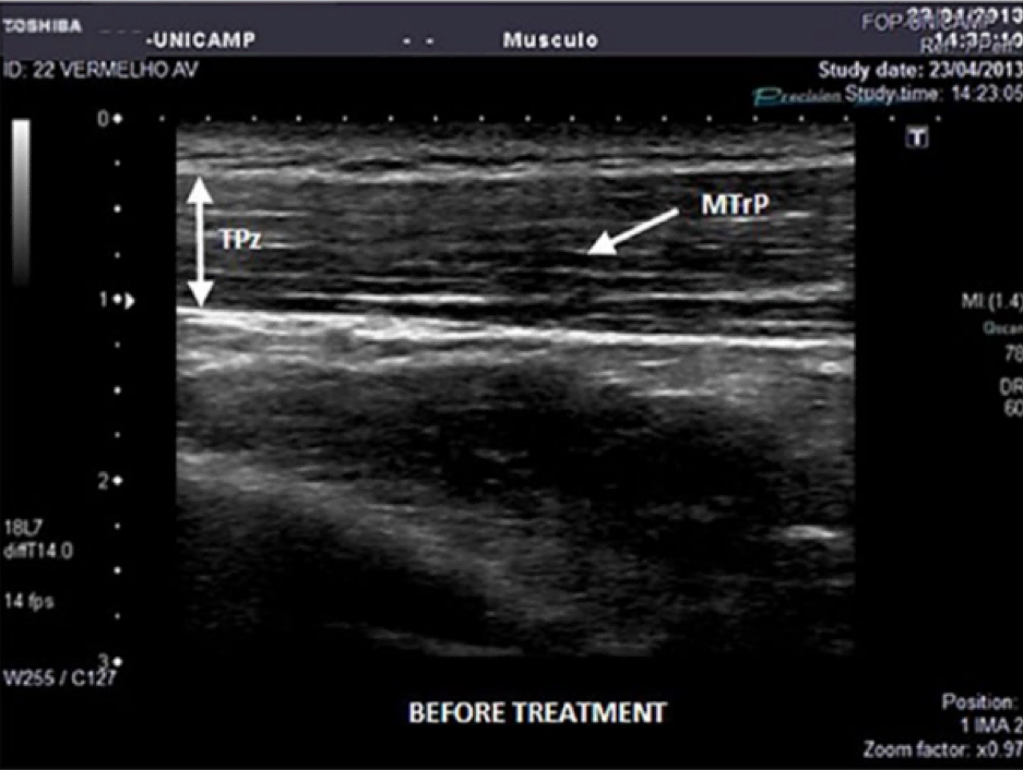 An educational session was provided for the raters. It included the characteristics of the MTrP as described in the literature. Ultrasound of the upper trapezius with independent blinded analysis by two inexperienced and one experienced rater. Each rater examined each US image twice.